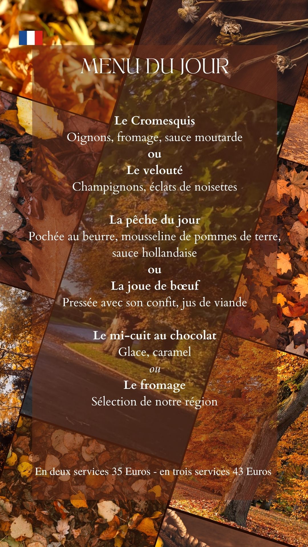 Notre restaurant vous propose un menu éphémère, pensé selon l’inspiration du chef et les saveurs de saison, pour une expérience toujours renouvelée. (Déjeuner uniquement)