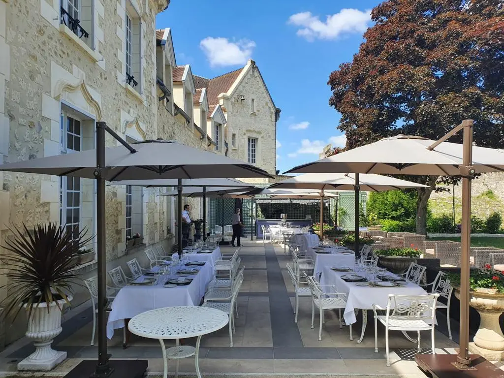 Aux beaux jours, la terrasse du restaurant devient le lieu privilégié des épicuriens. Entourée de verdure et face aux ruines du Château de Fère, elle invite à savourer une cuisine bistronomique tout en profitant du calme et de la douceur champenoise.