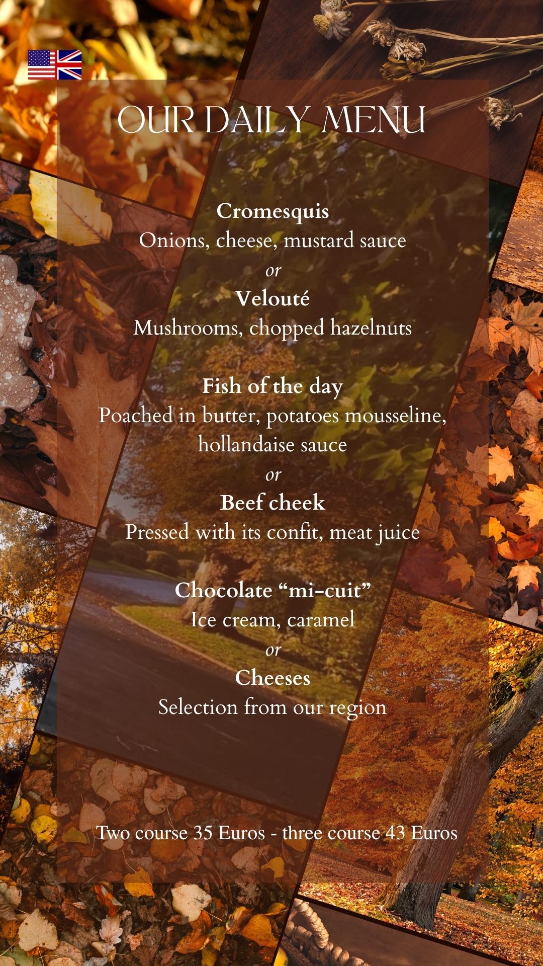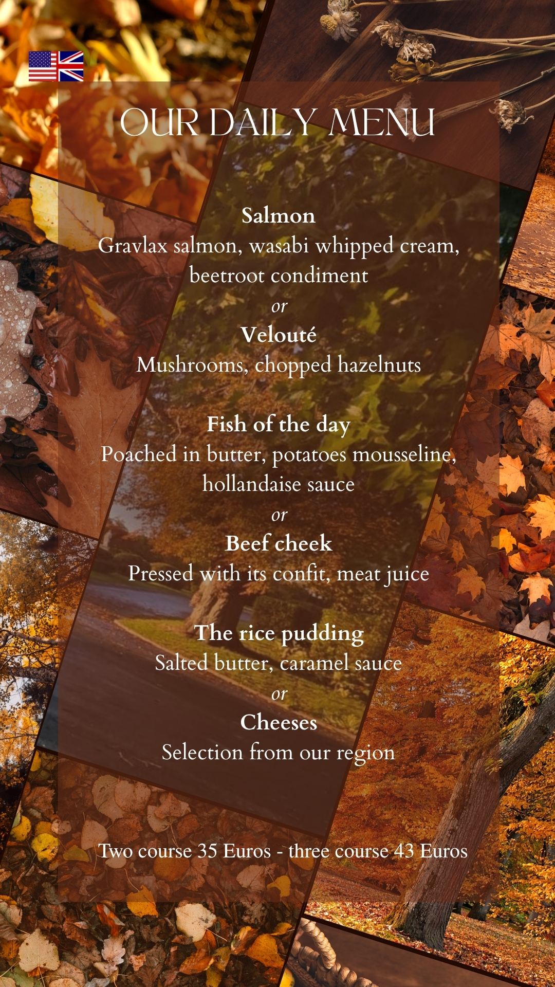 The restaurant, decorated with representations of the Fables of Jean de la Fontaine, is divided into 3 private dining rooms. The terrace offers a privileged view of the Park and the Castle ruins.