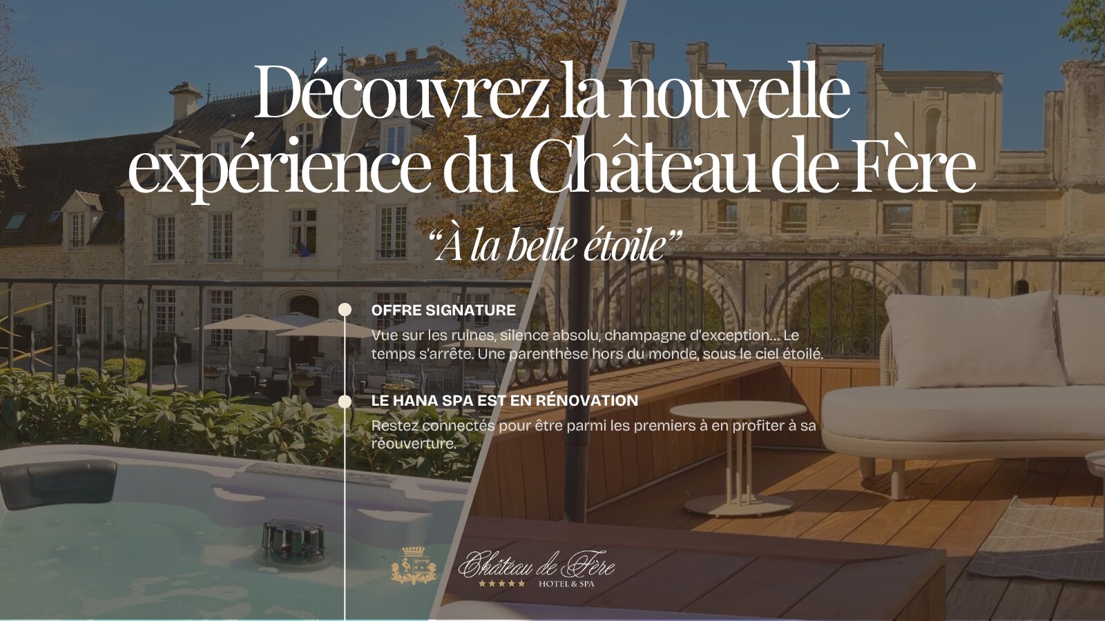 Bienvenue au Château de Fère, Hôtel & Spa, un domaine historique et familial, situé à seulement 75 minutes de Paris, aux portes de la région de Champagne. Depuis plus de 30 ans, nous préservons avec soin ce lieu unique, alliant élégance intemporelle et luxe moderne.