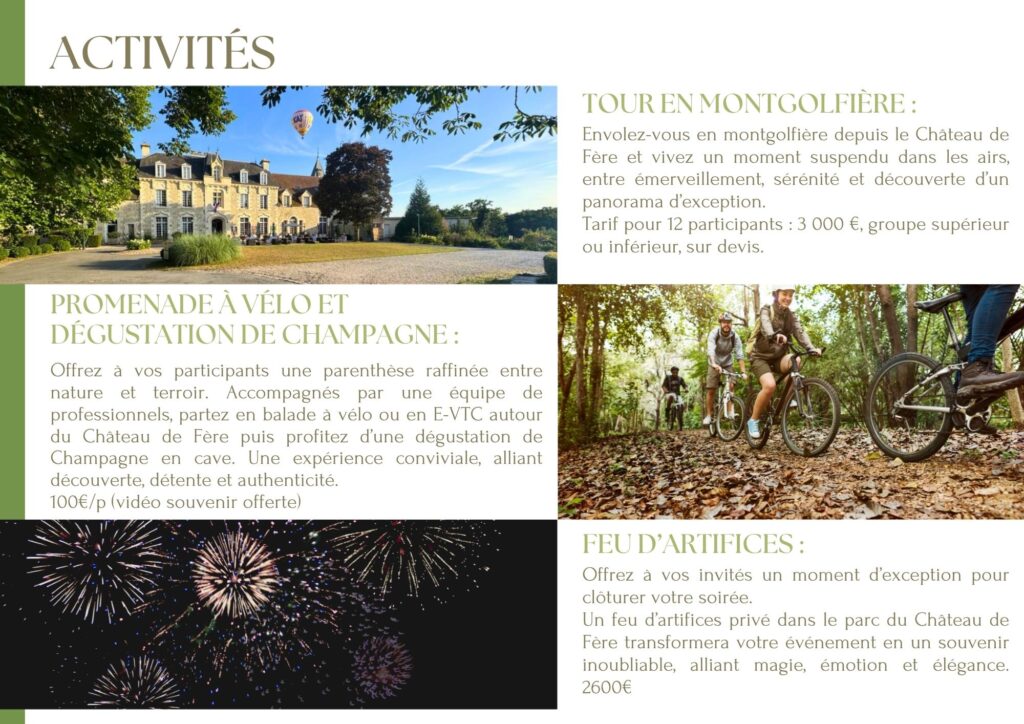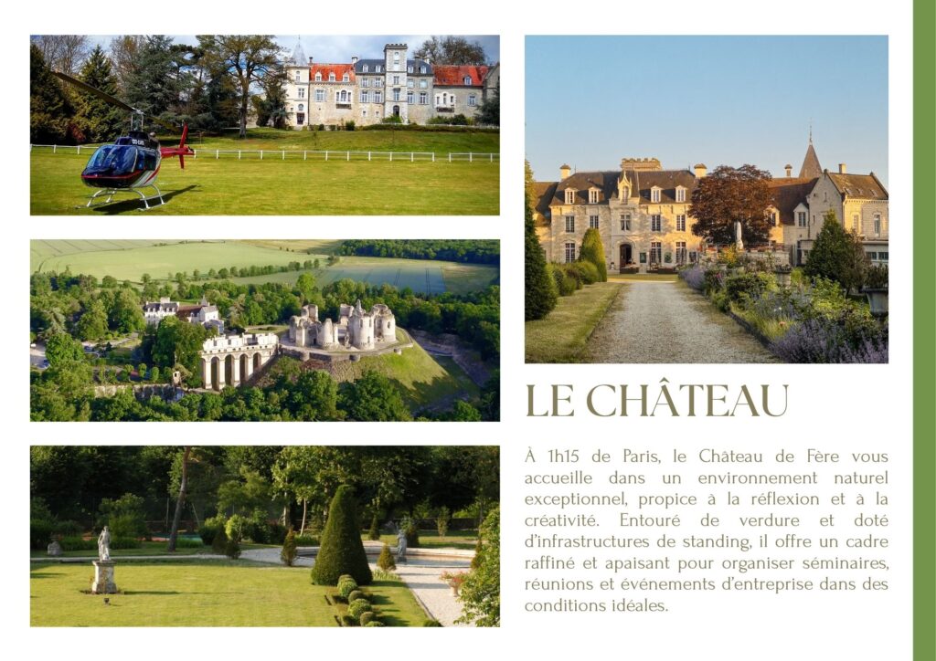 Le Château de Fère est un cadre unique pour vos événements professionnels. Situé à 1 heure 15 minutes de Paris, le Château dispose de tout l’équipement nécessaire pour des événements professionnels.
